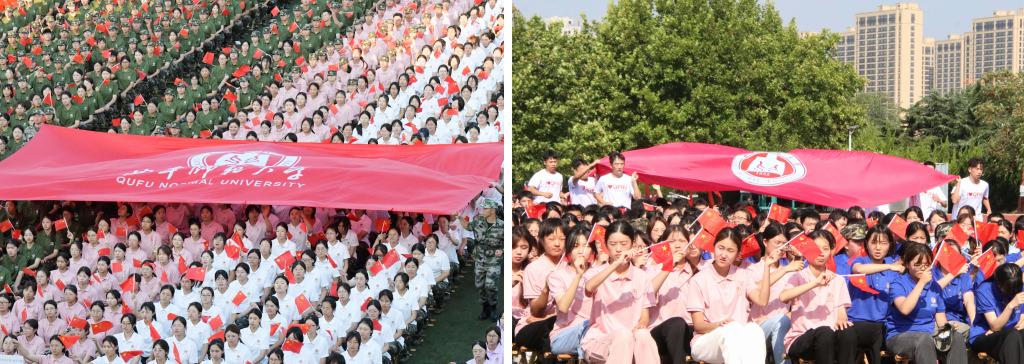 典礼在庄严的升旗仪式中拉开序幕。典礼上,党委副书记、校长张洪海为新生代表佩戴校徽并讲话,寄语新生挺膺担当,奋力书写青春篇章。党委副书记李志红,党委常委、副校长胡凡刚分别在曲阜、日照校区主持典礼。