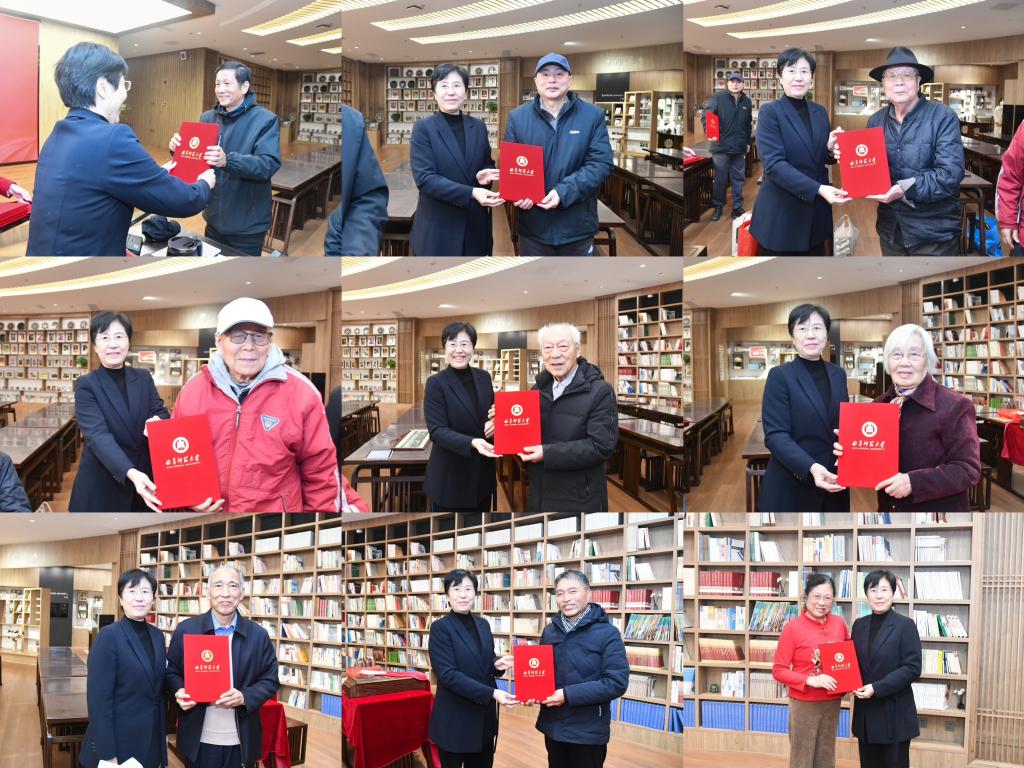 仪式上,李志红为老教师颁发捐赠证书。本次活动,张顺清、潘传增、张志静、赵跃明、陈清平、经济民、瞿鸣恺、侯子艾8位上世纪五十年代参加工作的老教师及胡劲松、陆彦忠2位教师共捐赠教材、教案、教具、照片及各类荣誉证书110余件,老教师们依次展示捐赠物品并深情讲述了其背后的故事,这一件件宝贵的藏品既是曲师设学兴教的历史见证,又承载着师者对学校的深情厚谊。